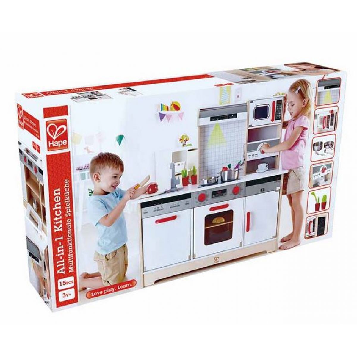 Dřevěná kuchyňka od značky Hape vyniká propracovanými detaily a dlouhou životností. Multifunkční kuchyňskou linku 4 v 1 si děti rychle oblíbí. Připravovat jídlo pro rodiče, nebo kamarády bude nyní velká zábava.