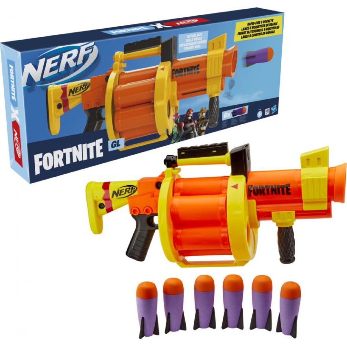 Super pistole NERF Fortnite GL-L je inspirována pistolí ze hry Fortnite a je vzhledem a barvou replikou pistole používané v této populární videohře Fortnite Battle Royale.