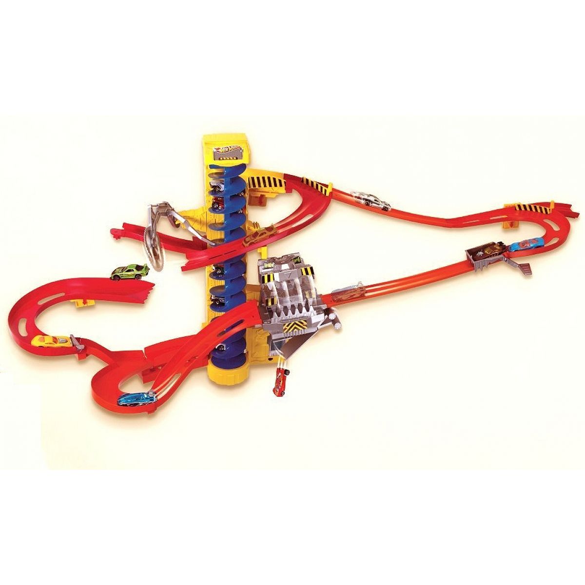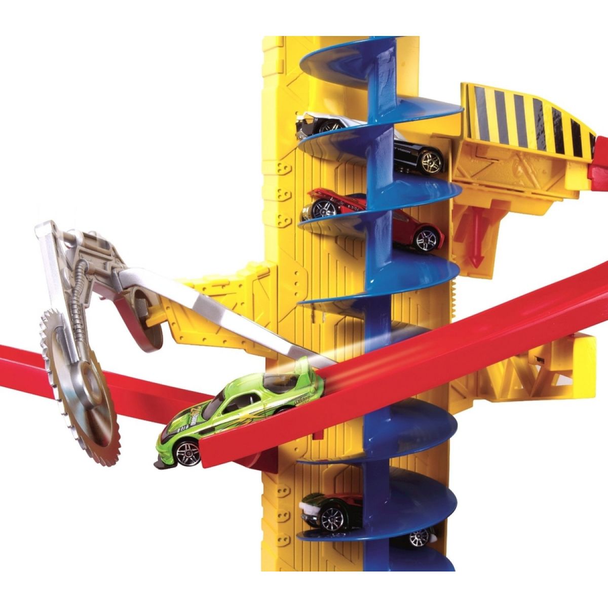 Zábavná dráha s věží s motorizovaným výtahem, který vyváží auta na vrchol soupravy, aby sis mohl pořád hrát!