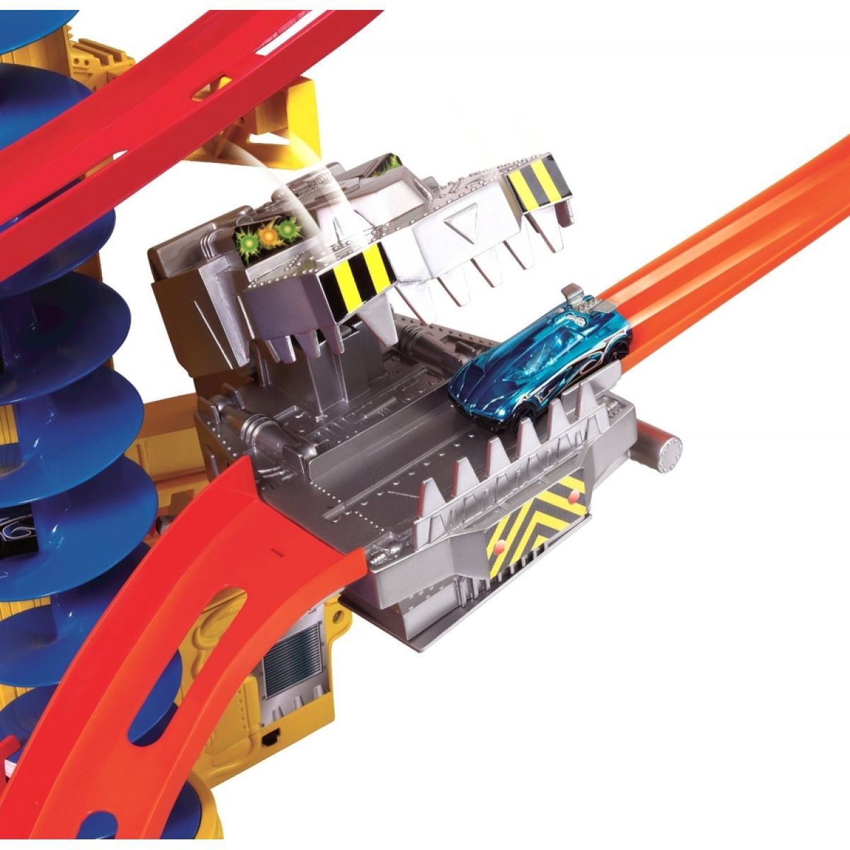Jakmile jsou auta nahoře a vypuštěna na trať, existuje nepřeberně možností, jak se pobavit, včetně pohyblivé pily a přežvykující příšery.