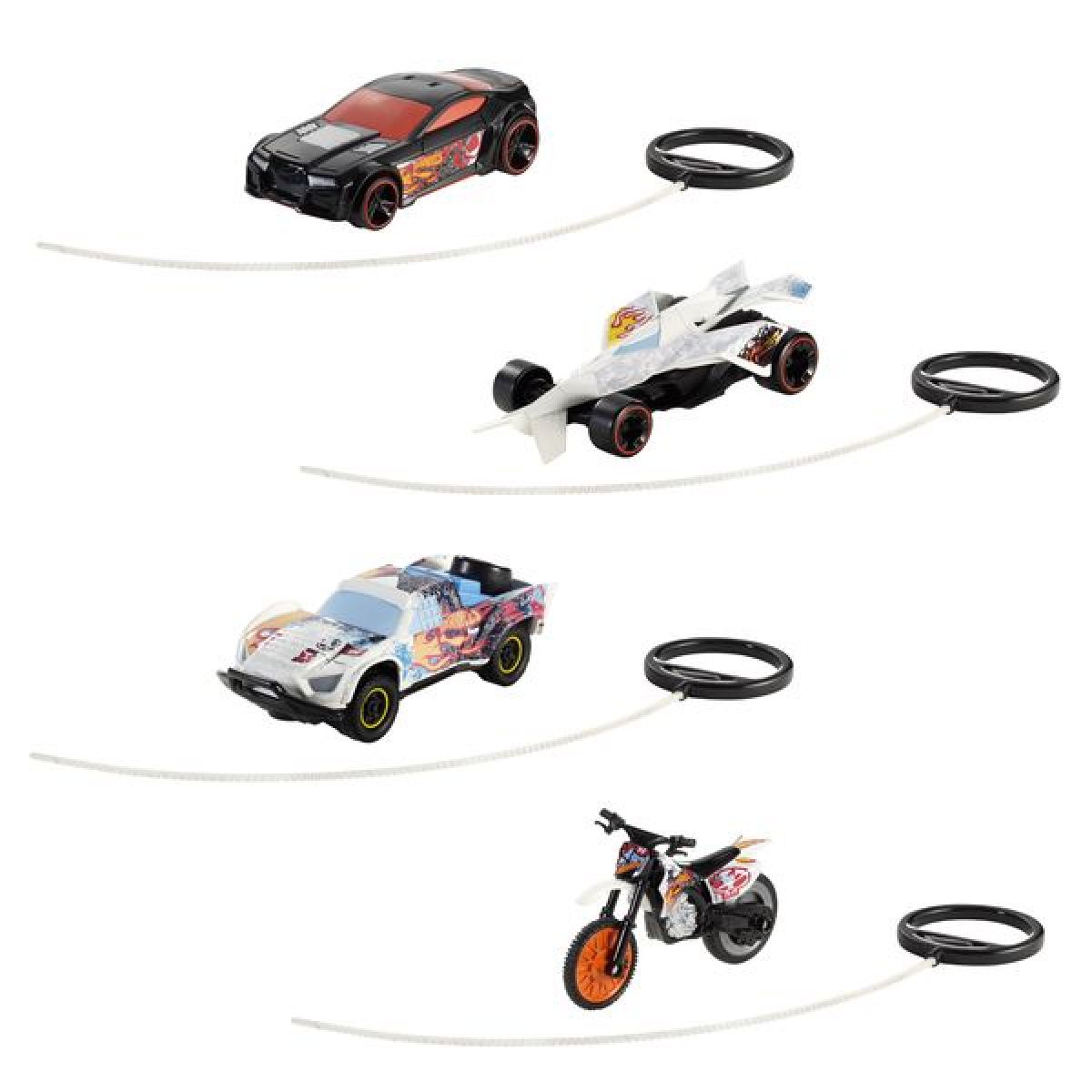 Autíčka týmu Hot Wheels v měřítku 1:24 jezdí šíleně rychle! Vlož lanko, vytáhni a sleduj, jak autíčko letí po podlaze!