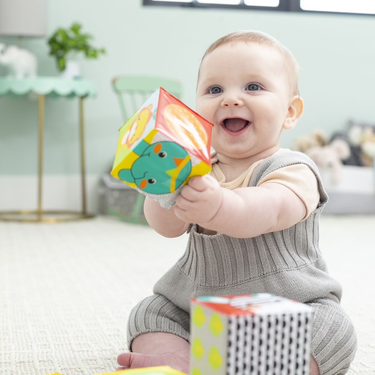 Infantino Kostky do koupele 3 ks jsou navrženy pro bezpečné a podnětné hraní již od narození. Díky omyvatelnému provedení a lehké konstrukci jsou vhodné jak do vany, tak pro běžnou manipulaci během denní hry. Kontrastní barvy a ilustrace zvířátek podporují vizuální vnímání, zatímco možnost stavění či mačkání kostek rozvíjí jemnou motoriku a koordinaci. Zobrazení zvířat, barev a čísel napomáhá ranému učení a objevování světa kolem. Sada obsahuje 3 snadno omyvatelné kostky vyrobené z bezpečných materiálů.