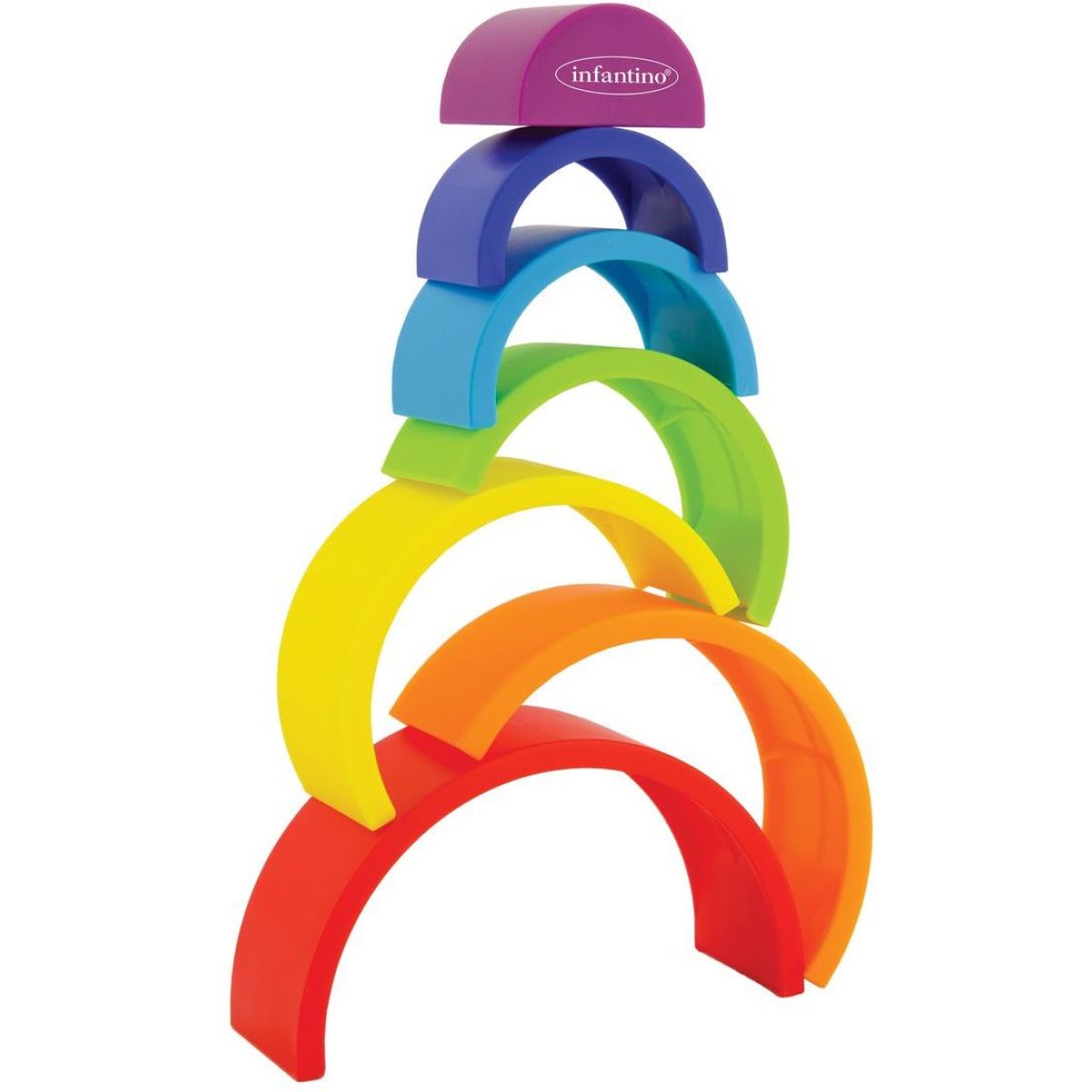 nfantino Skládačka duha Magic Rainbow je 7-dílná skládačka ve tvaru duhy, která podporuje rozvoj jemné motoriky, koordinace a prostorového vnímání dítěte. Díky skládacím dílům si děti procvičují logické myšlení a kreativitu při stavění a skládání různých tvarů. Hračka je vyrobena z bezpečných a odolných materiálů vhodných pro malé děti.