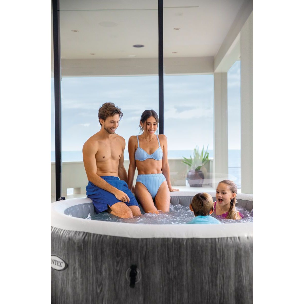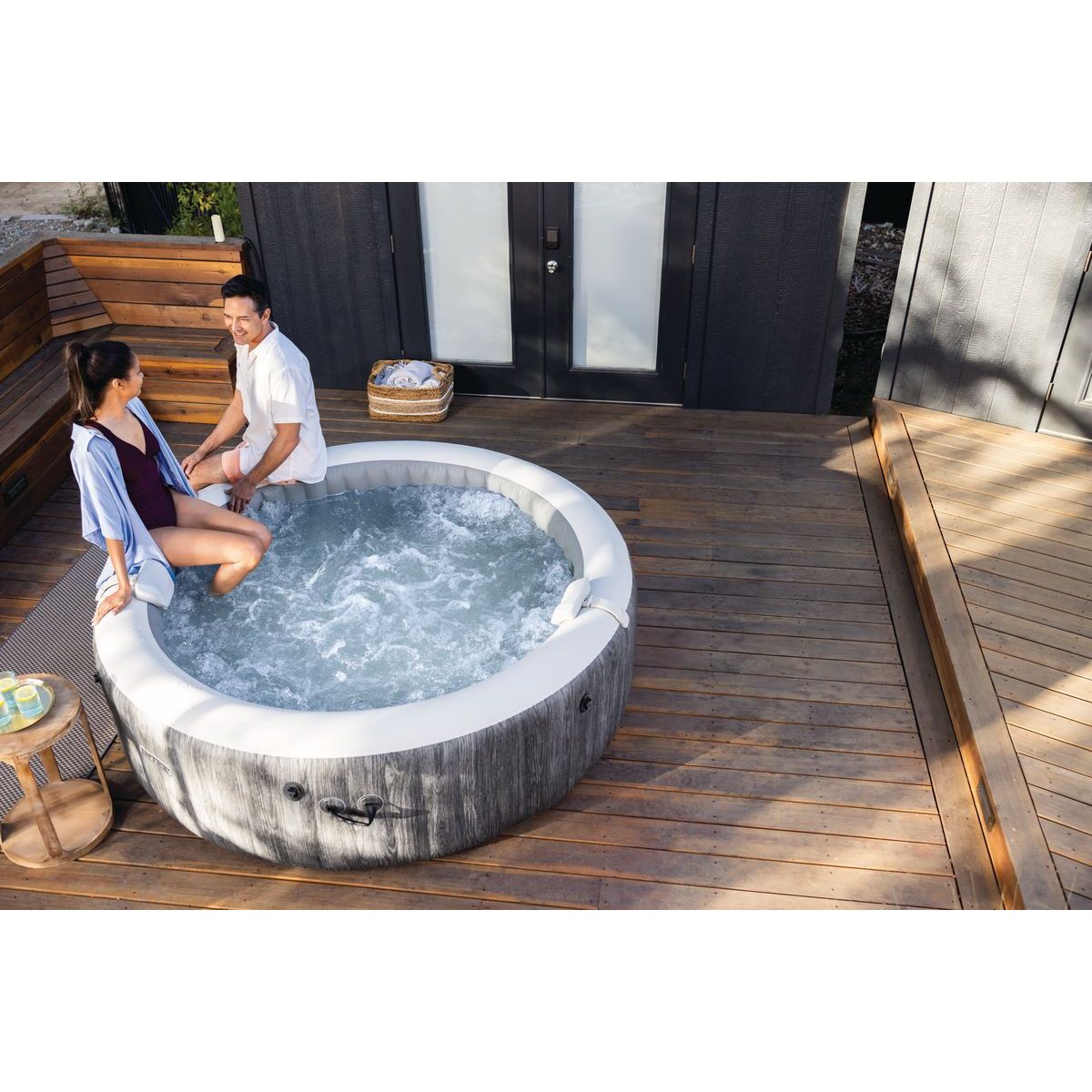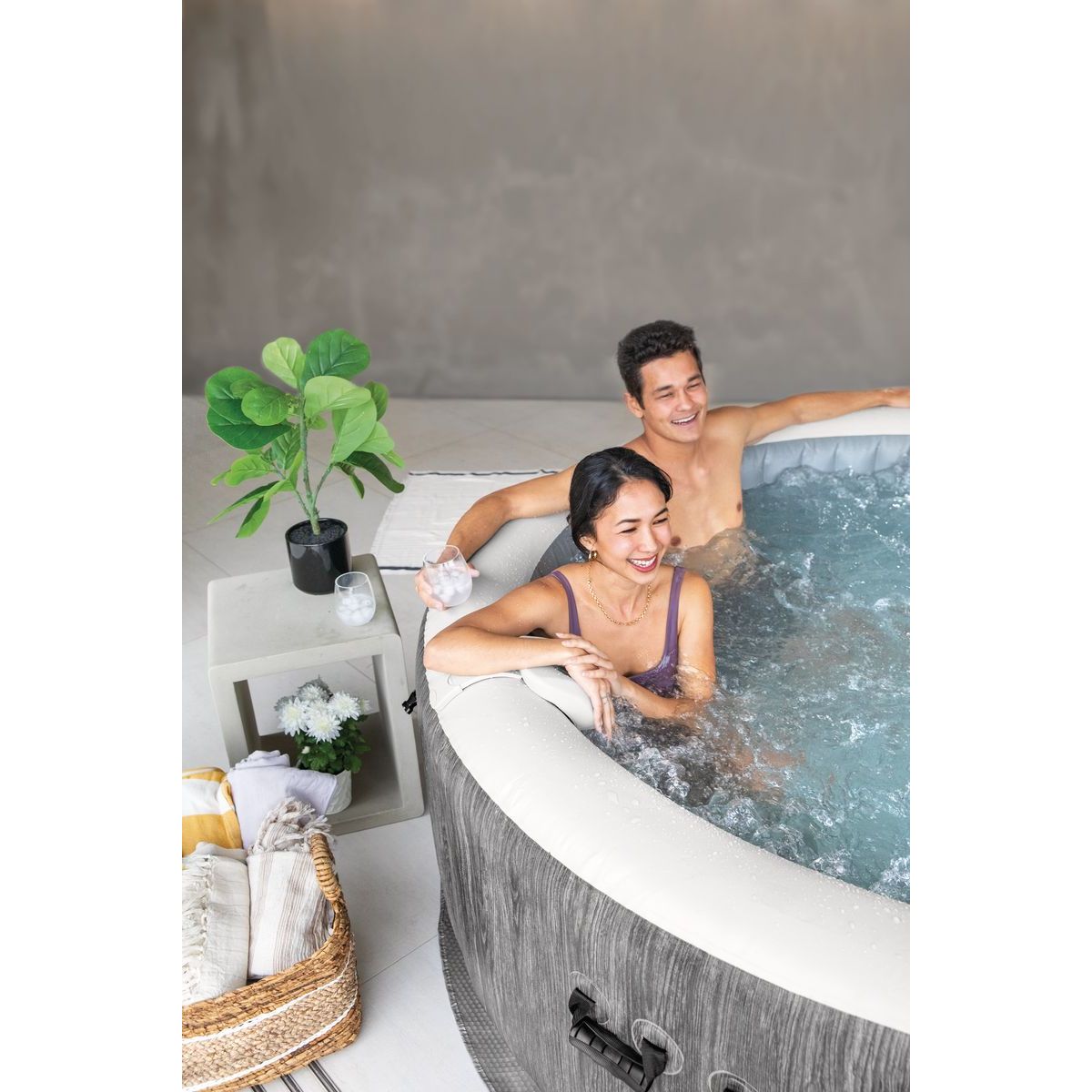 Nafukovací vířivka Intex 28442NP PureSpa™ Greywood Bubble Deluxe je určena pro komfortní relaxaci až šesti osob. Elegantní šedý dekor s imitací dřeva umožňuje přirozené začlenění do zahrady, na terasu i prostornější balkon. Konstrukce využívá technologii Fiber-Tech™, která zajišťuje vysokou pevnost stěn a stabilitu i při plném napuštění.