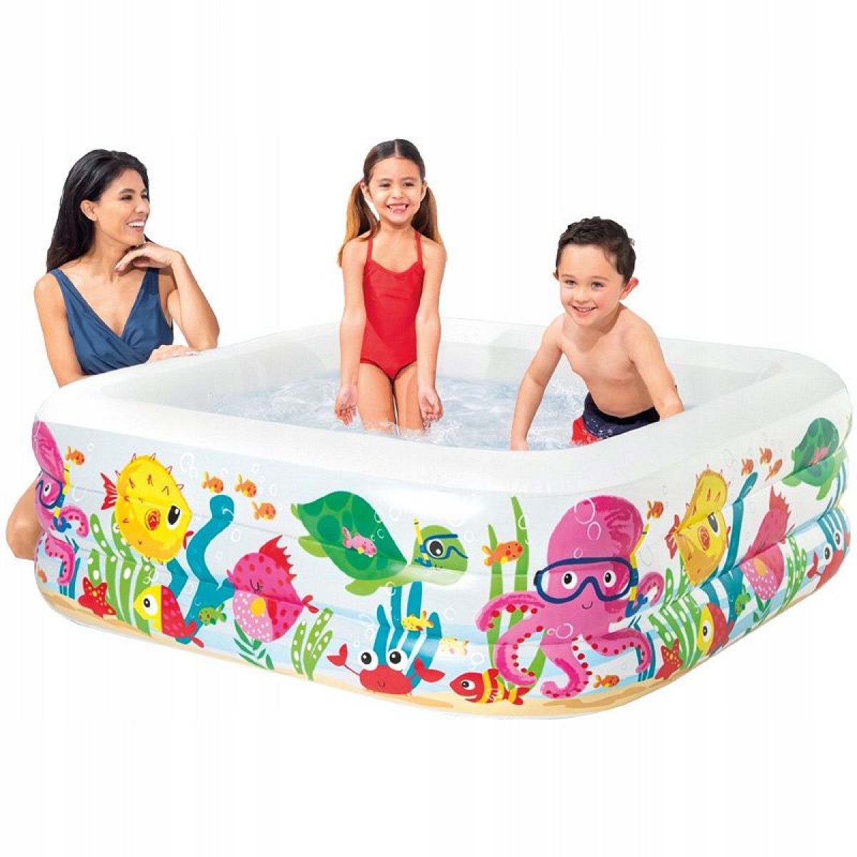 Bazén s motivem mořského dna hranatý. Vypouštecí ventil. Opravná sada přiložena.