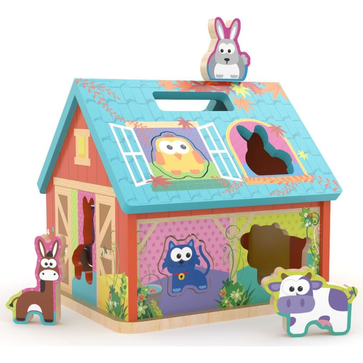 Vstupte do světa farmy s dřevěnou vkládačkou J'ADORE, která rozvíjí dětskou představivost a jemnou motoriku. Tento roztomilý farmářský domeček je nejen zábavný, ale i poučný – děti se díky němu naučí rozeznávat tvary, barvy a zvířátka. Každý dílek má své přesné místo ve stěně domečku, což podporuje koordinaci rukou a očí.