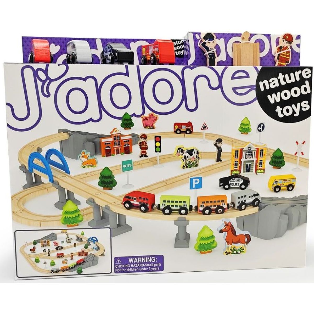 J'ADORE Vláčková dřevěná dráha s mostem a doplňky