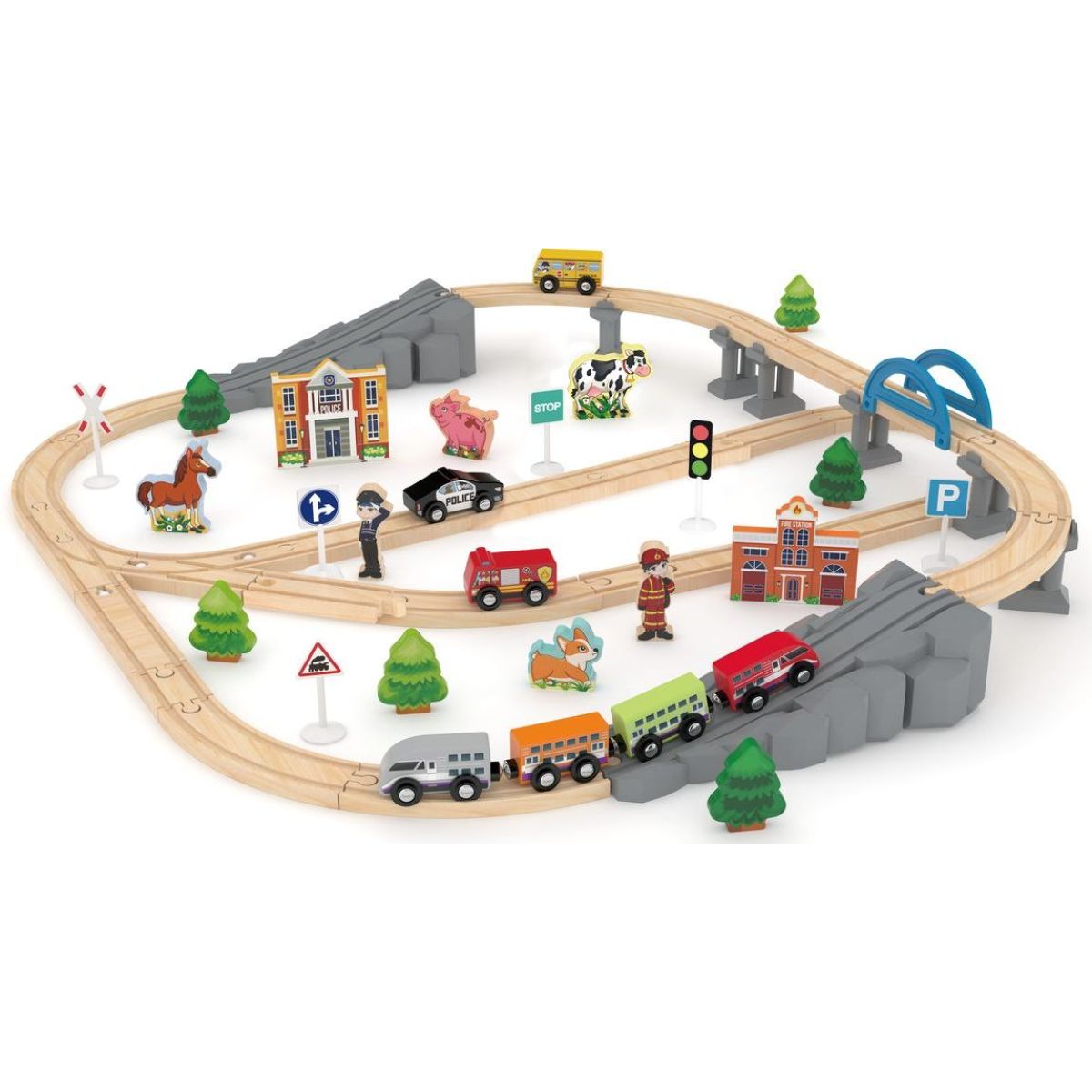 Vydejte se na dobrodružnou cestu světem vláčků s touto dřevěnou dráhou plnou mostů a doplňků, která rozvíjí dětskou představivost i motoriku. Díky kvalitnímu přírodnímu materiálu a promyšlenému designu nabízí tento set nejen zábavu, ale i bezpečí pro malé stavitele tratí. Lokomotiva, vagónky, koleje a tematické figurky tvoří kompletní svět železnice, kde si děti mohou vytvářet vlastní scénáře a učit se logickému myšlení i koordinaci pohybů.