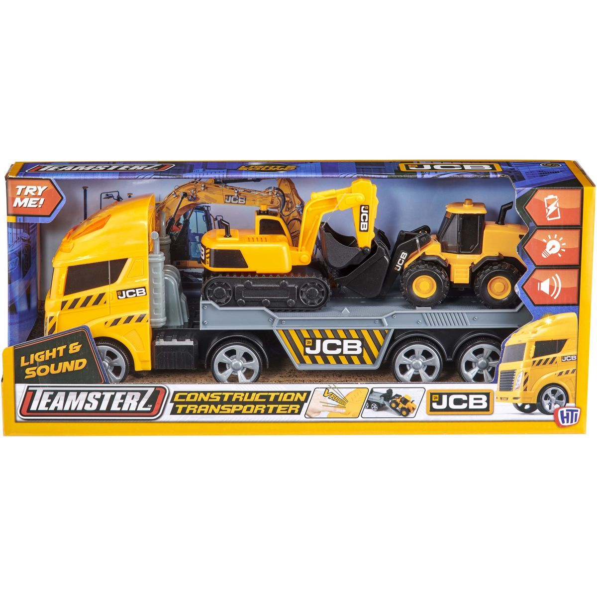 Vydej se na stavbu s tímto detailně zpracovaným JCB transportérem s volně pohyblivými koly, blikajícími světly a zvukem motoru! Součástí balení je bagr a kolový nakladač, oba s ručně ovládanými předními lžícemi. Díky snadno přístupné nájezdové rampě mohou děti jednoduše naložit vozidla a pustit se do hry. Funkce a vlastnosti: Volně pohyblivý transportér s blikajícími světly a zvukovými efekty Obsahuje bagr a kolový nakladač s funkčními lžícemi Snadná nakládací rampa Ideální velikost vozidel pro hru tlačením Podporuje jemnou motoriku, kognitivní i sociální rozvoj Pomáhá rozvíjet dětskou představivost a zájem o svět kolem sebe Vyžaduje 3× LR44 baterie (součástí balení) Vhodné pro děti od 3 let Skvělá sada pro malé stavitele – zábava se světly, zvuky a realistickými funkcemi!