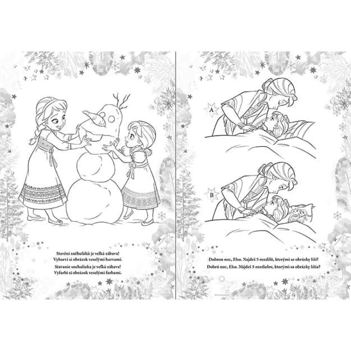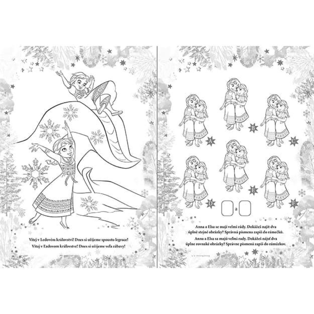 Omalovánky ve formátu A4 obsahují 16 černobílých stran s motivy z oblíbeného filmu Ledové království.