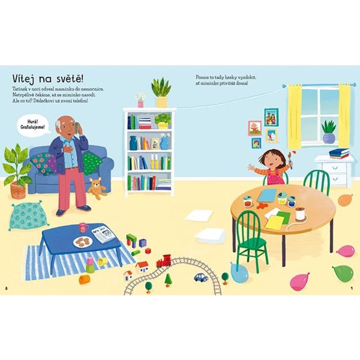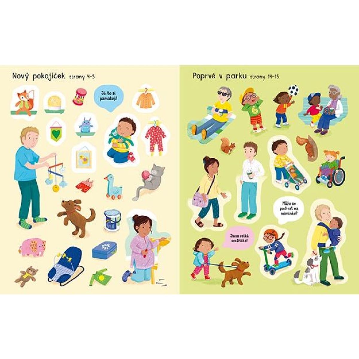 Samolepková knížka obsahuje 16 barevných stran s tematickými ilustracemi a 8 stran samolepek určených k dolepení.