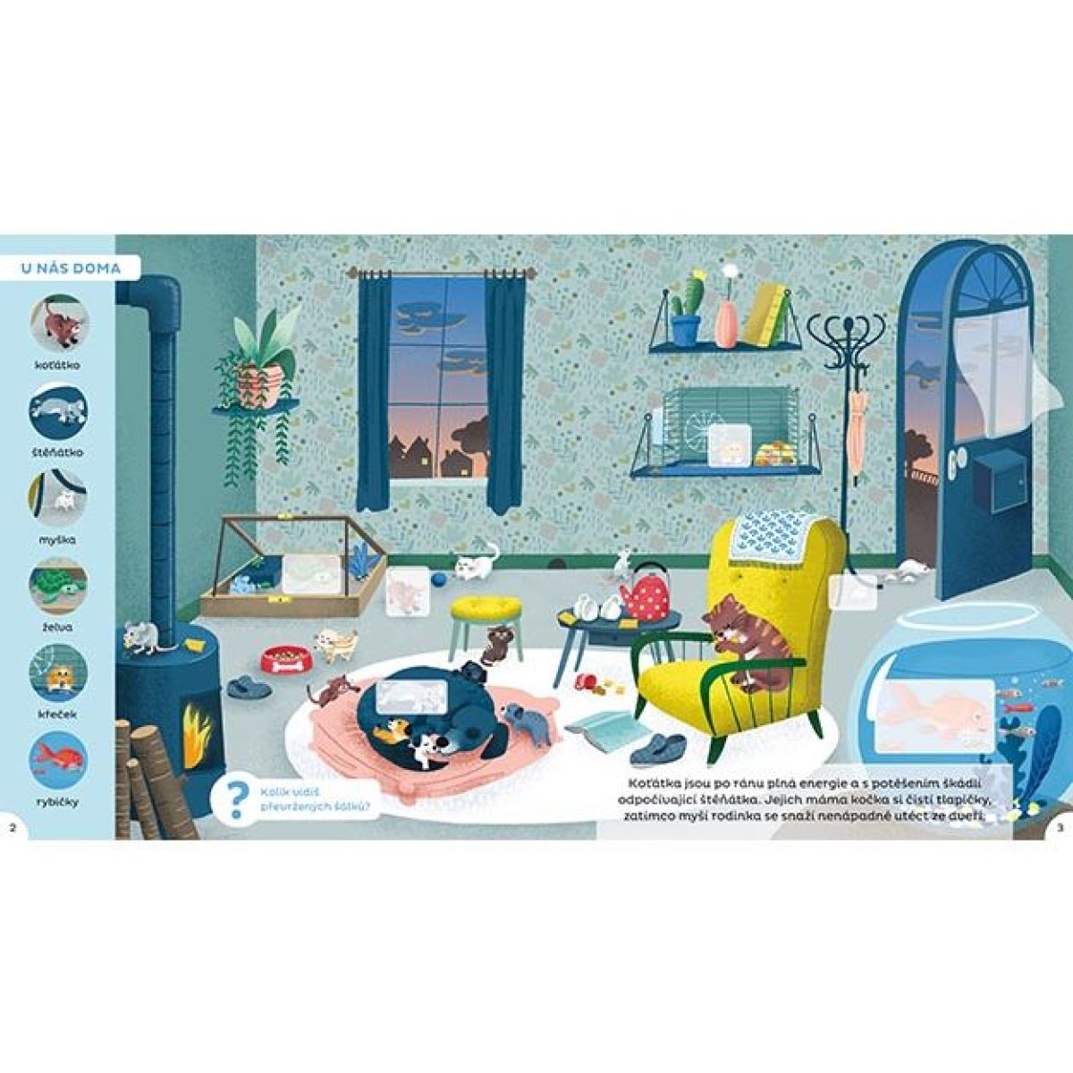 Obsahuje 16 barevně ilustrovaných stran s informacemi o životě zvířat a jejich mláďat, doplněných jednoduchými úkoly pro rozvoj pozornosti a logického myšlení.