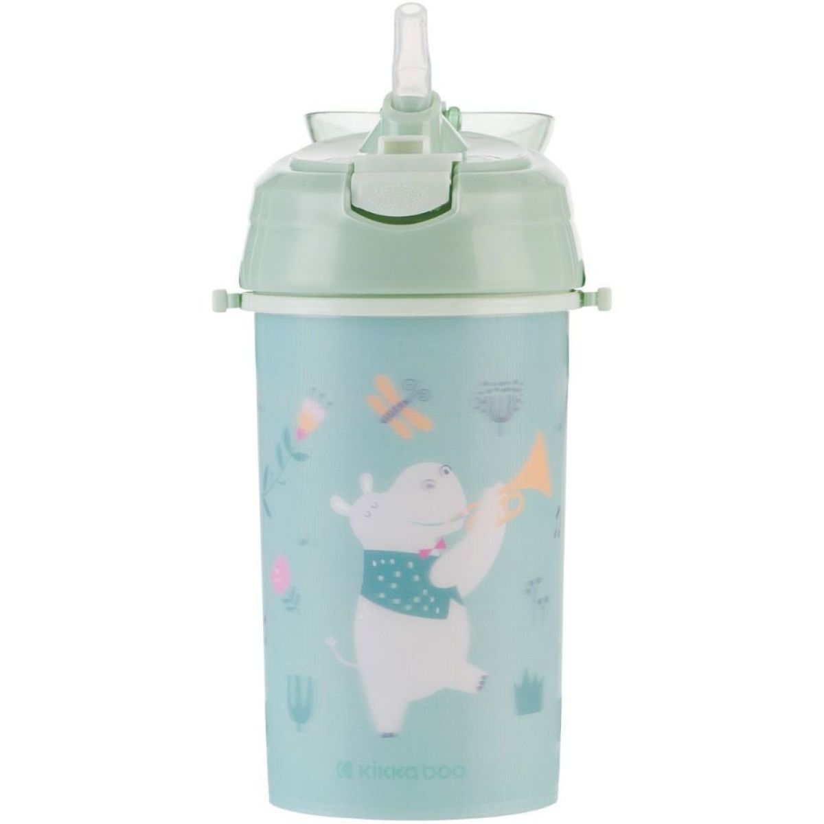 KikkaBoo Hrnek se silikonovým brčkem a popruhem 450ml Music Fest Mint