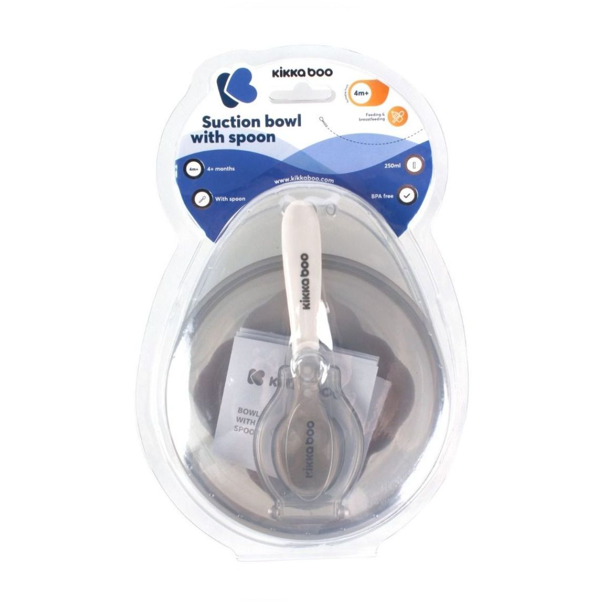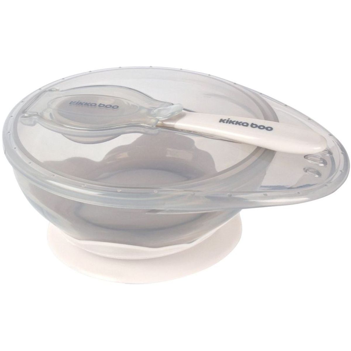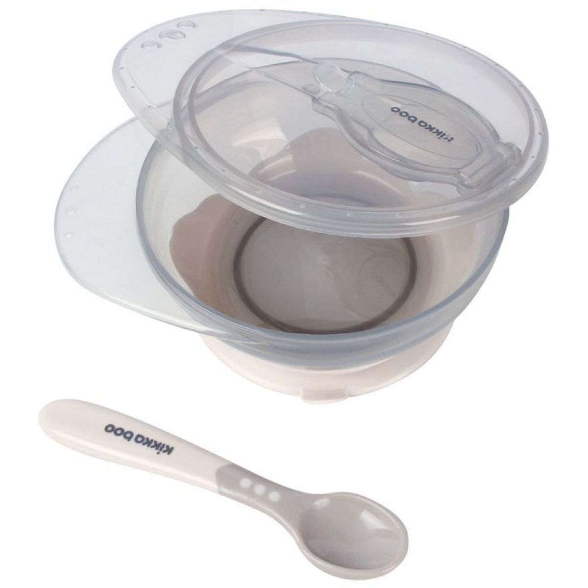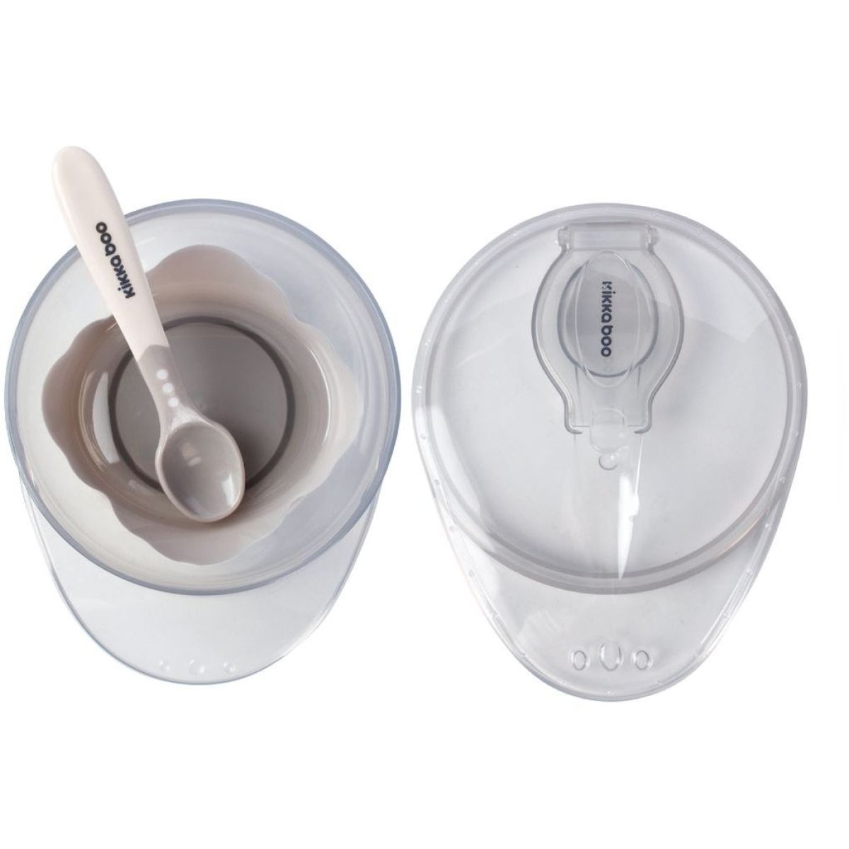 KikkaBoo Miska s přísavkou, víčkem a lžičkou Beige