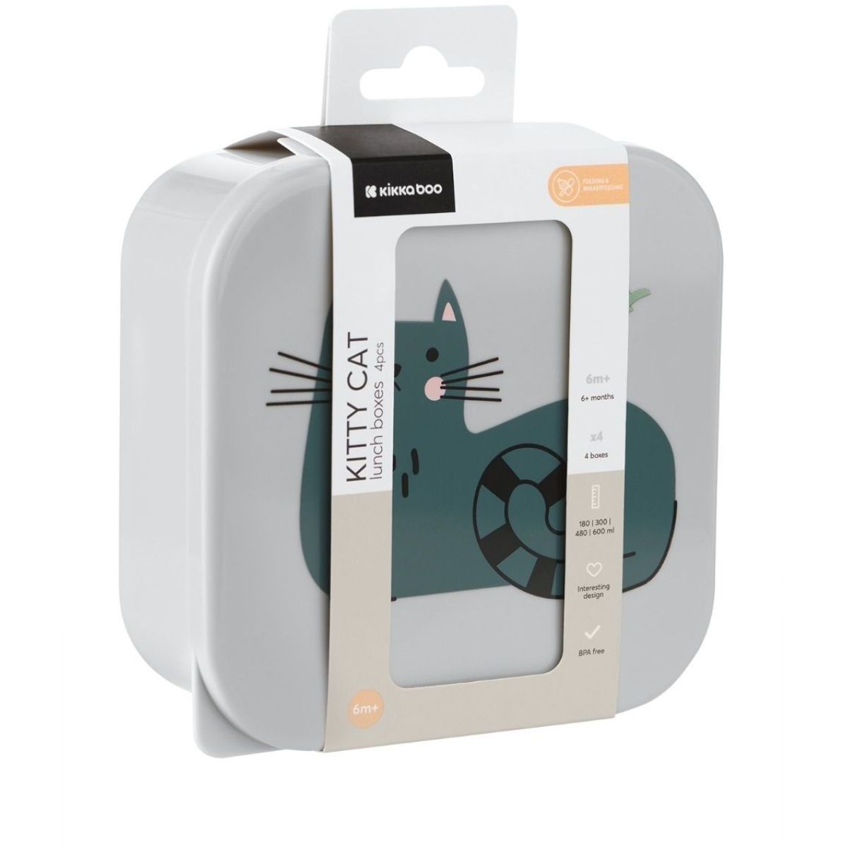 KikkaBoo Sada boxů na svačinu 4 ks Kitty Cat Grey