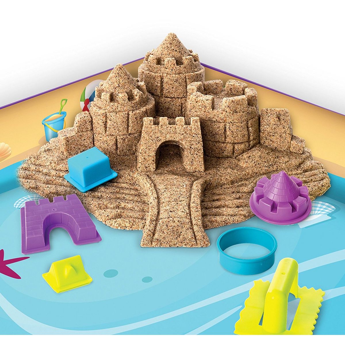 Sada kinetického písku s motivem plážové zábavy. Můžeš stavět jako na opravdové pláži a s pomocí válečku a hrabiček postavíš super stavby.