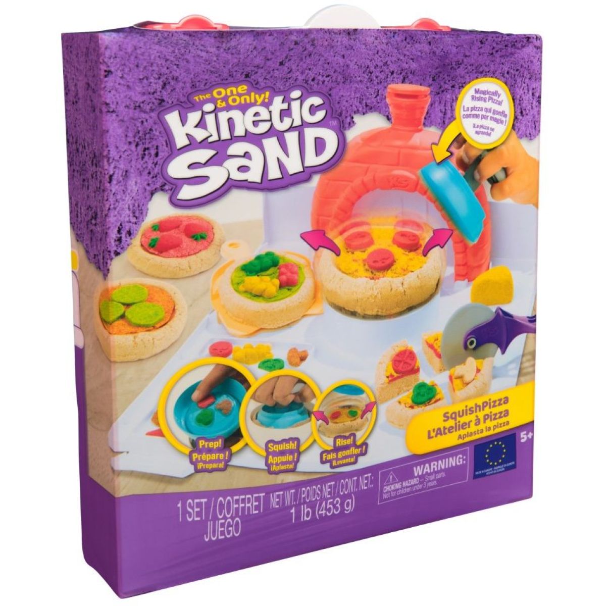 Obsahuje barevný kinetický písek, formičky a nástroje k přípravě pizzy, které rozvíjejí jemnou motoriku, koordinaci a představivost.
