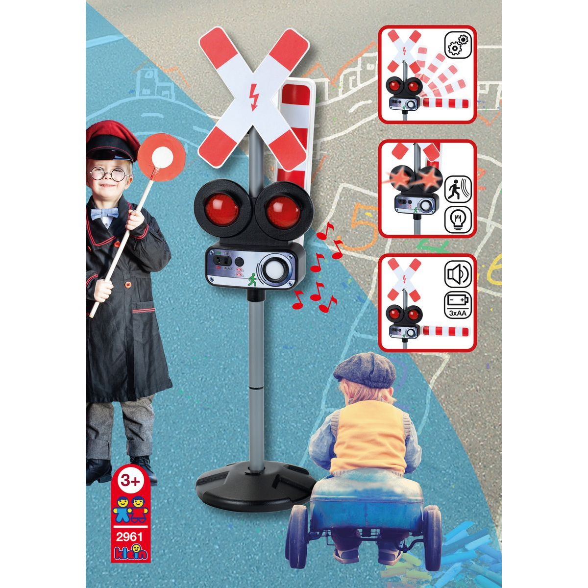 Železniční závory s funkcí světla a zvuku. Fáze semaforu jsou volitelné automaticky nebo ručně. Výška 80 cm, šířka 50 cm. Baterie nejsou součástí balení. Vhodné od 3 let.