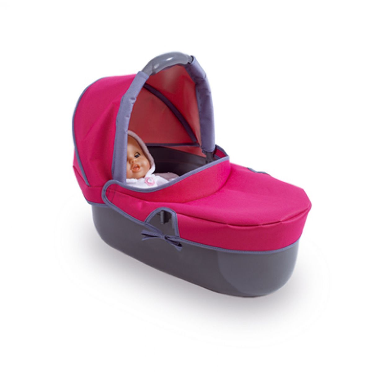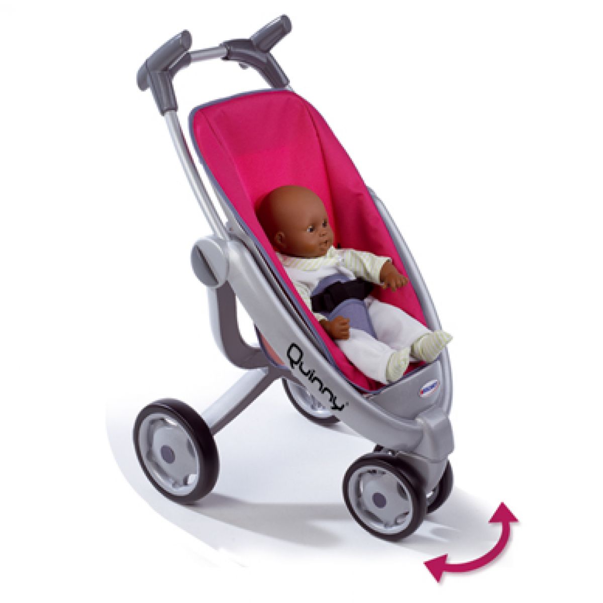 Skládací kombinovaný kočárek Quinny pro panenky do 42cm. Stabilní konstrukce s bržděnými koly. Pogumovaná držadla pro pevné uchopení.