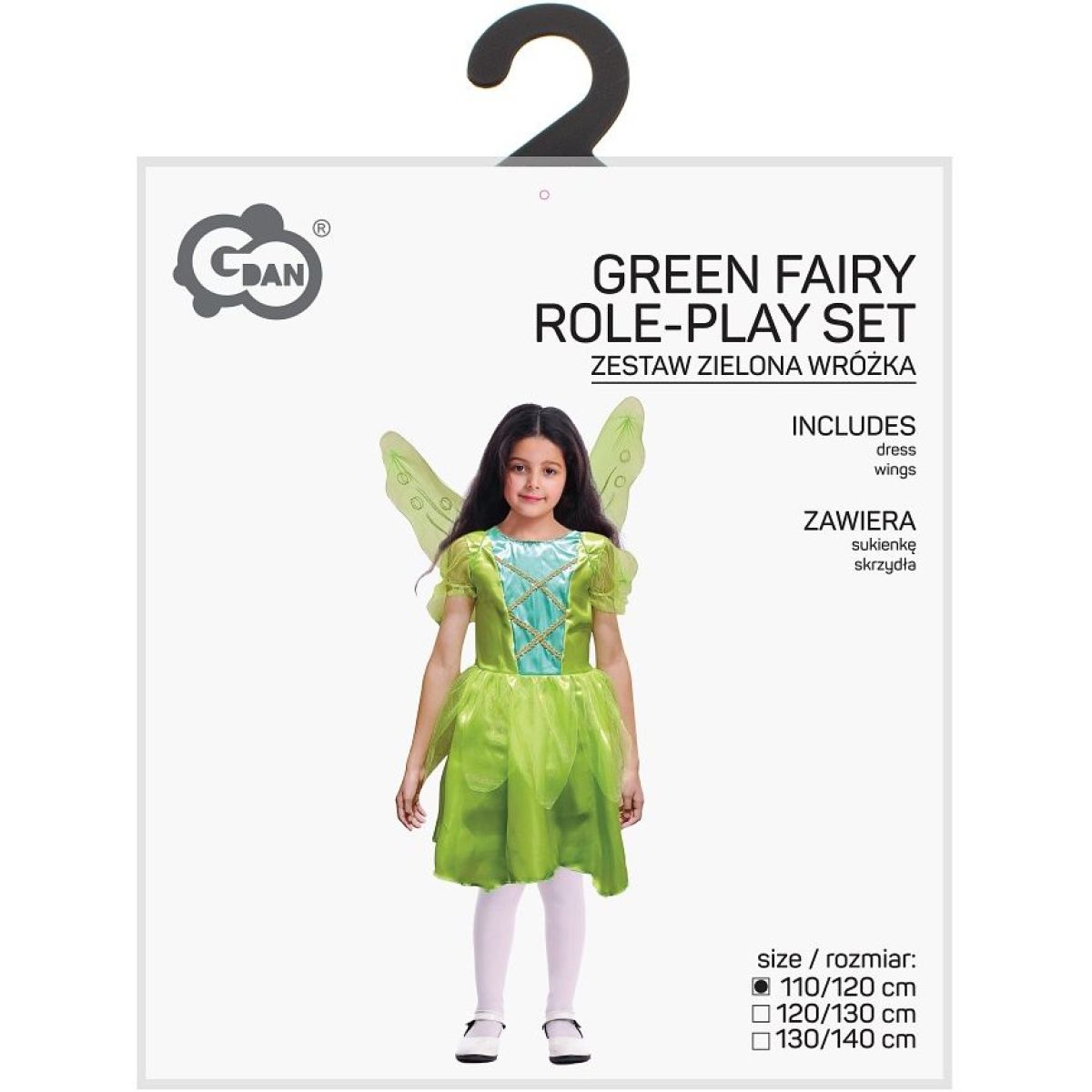 Dětský kostým Zelená víla ve velikosti 110–120 cm je určen pro karnevaly, tematické oslavy a pohádkové hry. Kostým tvoří zelené šaty a vílí křídla, které společně vytvářejí ucelený a harmonický vzhled. Šaty jsou vyrobeny z lesklého materiálu, jenž jemně odráží světlo a dodává kostýmu svěží a zářivý efekt. Vrchní část je doplněna světle modrým panelem s ozdobnými zlatými šňůrkami ve tvaru kříže, které slouží jako dekorativní prvek.