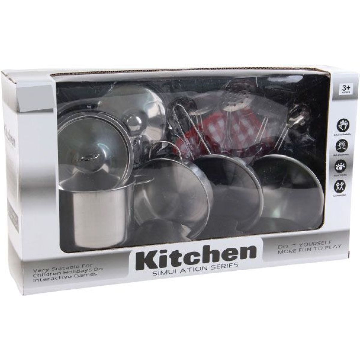Vstupte do světa malých kuchařů s touto kovovou sadou nádobí, která nabízí vše potřebné pro první kulinářské pokusy. S 11 kusy příslušenství si děti mohou hrát na vaření jako opravdoví profesionálové. Odolný kovový materiál zaručuje dlouhou životnost a realistický vzhled, který podnítí dětskou představivost a kreativitu. Tato sada je ideální volbou pro děti od 3 let, které se chtějí naučit základy vaření a zároveň rozvíjet své motorické dovednosti a fantazii. Díky kompaktním rozměrům balení snadno uskladníte všechny části pohromadě a můžete ji vzít kamkoliv s sebou. Připravte se na hodiny zábavy v dětské kuchyňce plné barev, chutí a smíchu!