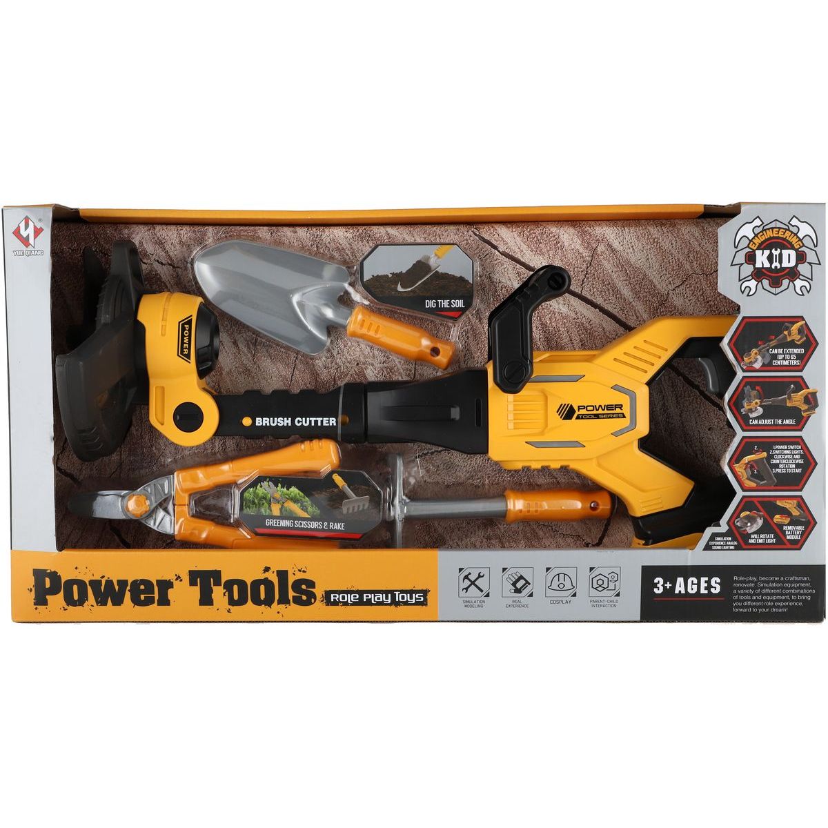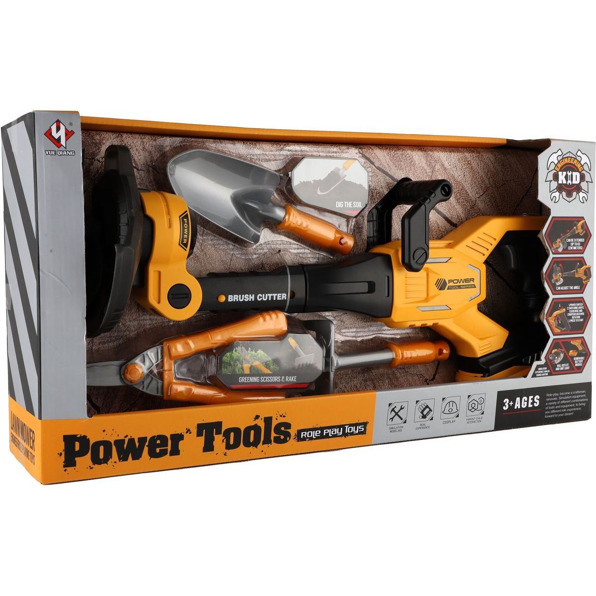 Tento realistický křovinořez je perfektní pro malé pomocníky na zahradě. Díky nastavitelnému sklonu i délce se skvěle přizpůsobí dětským rukám. Se zvukovými efekty, lehkou konstrukcí a praktickými doplňky jako lopatka, hrábě a nůžky, si děti užijí spoustu zábavy. Vyrobeno z kvalitního plastu. Baterie 3x AAA nejsou součástí balení. Velikost nářadí: 52 cm. Rozměr balení: 56 x 29 x 13,5 cm.