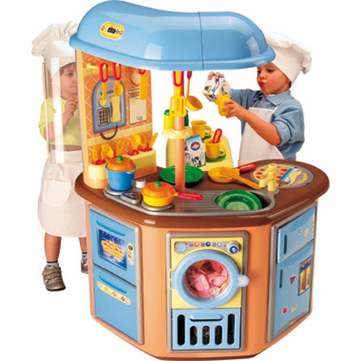 Kuchňka má troubu, chladničku i pračku. Dvířka kuchyňky jsou otevírací, mnoho příslušenství.