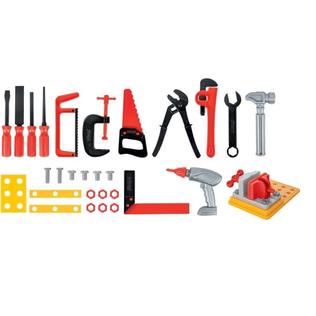 Sada obsahuje 25 ks různých nástrojů, včetně pilky, šroubováku, vrtačky, maticového klíče, hasáku a dalších.