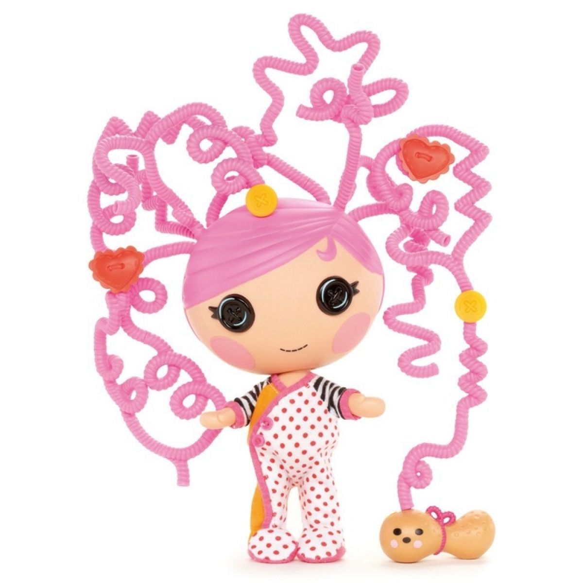 Barevná panenka Lalaloopsy Littles s bláznivými neposednými vlásky. Vlásky jsou rozděleny na jednotlivé části, které do sebe lze různě zapojovat, ozdobit přiloženými vlasovými ozdobami a vytvořit tak zcela originální účes. Užijte si spoustu zábavy při vytváření legračních účesů. Fantazii se meze nekladou!