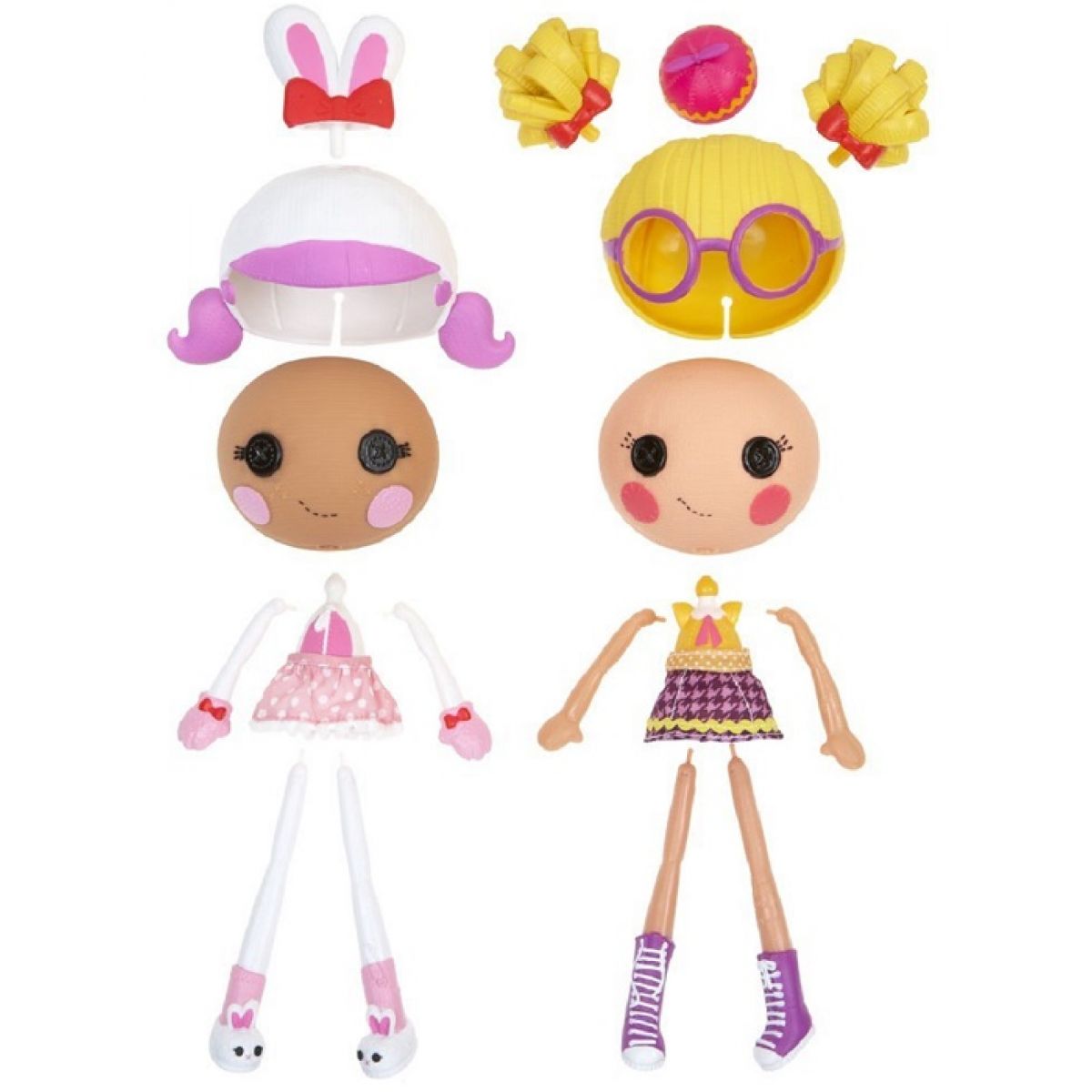 Kombinuj panenky Lalaloopsy! Každá panenka má odnímatelné části těla ( hlavičku, ruce, nožičky, učesy a doplňky ), tak si můžeš panenku sestavit jak potřebuješ a vytvořit originální vzhled.