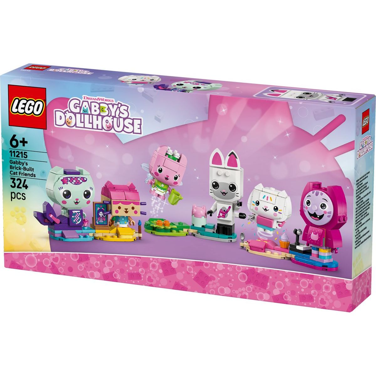 Vstupte do světa Gábi a jejích kočičích kamarádů se stavebnicí LEGO® 11215, která potěší všechny malé stavitele od 6 let. Tato sada obsahuje šest figurek z populárního seriálu Gábinin kouzelný domek, každá s unikátními doplňky – Rybočka s diamantem, Krabička s obrazem Gábi, Víla kočička s konev, Pandy Ťapka s domečkem pro panenky, Dortě s dortem a „DJ“ Daniel James Kocour s klavírem. Na základnách najdete dvě odnímatelné figurky, které umožní dětem oživit oblíbené příběhy nebo vymýšlet nová dobrodružství. Stavebnice má 324 dílků a podporuje kreativitu i jemnou motoriku. Navíc aplikace LEGO® Builder usnadňuje sestavování pomocí 3D návodu – modely lze otáčet a přibližovat pro lepší přehlednost. Tento krásný set je ideálním dárkem pro fanoušky seriálu i milovníky stavebnic LEGO®. Nechte děti ponořit se do světa fantazie plného kočičích kamarádů!