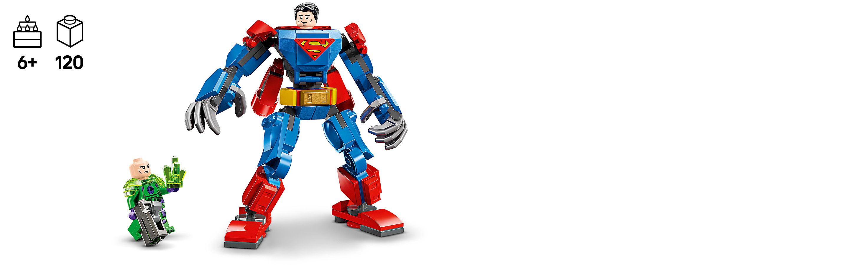 Stavebnice Superman™ v robotickém obleku vs. Lex Luthor™ (76302) je výjimečná sada LEGO® DC s robotickým oblekem navržená pro fanoušky akčních superhrdinů a kreativních dobrodružství od 6 let.