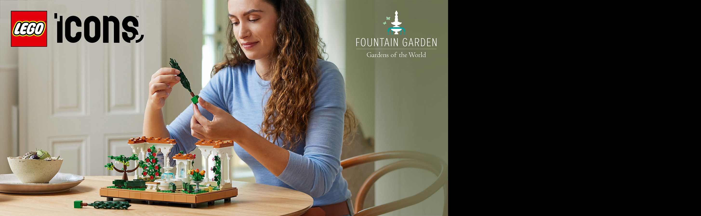 Vychutnejte si stavění propracované stavebnice LEGO® Icons (10359) Zahrada s fontánou pro dospělé, která se skvěle hodí domů i do kanceláře.