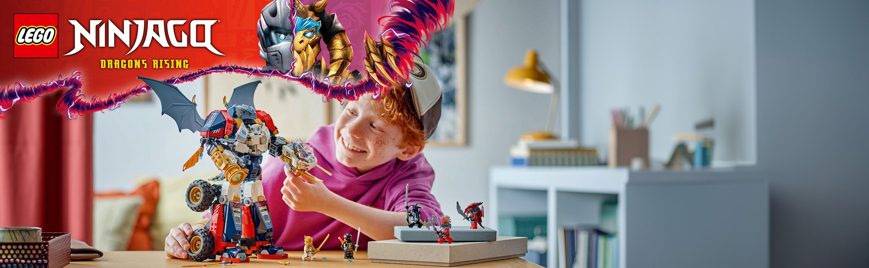 Kluci a holky od 9 let si užijí nekonečné herní možnosti při přehrávání napínavých scén ze 3. řady televizního seriálu NINJAGO® Dračí povstání se stavebnicí Zaneův ultrakombo robot (71834) 4 v 1.