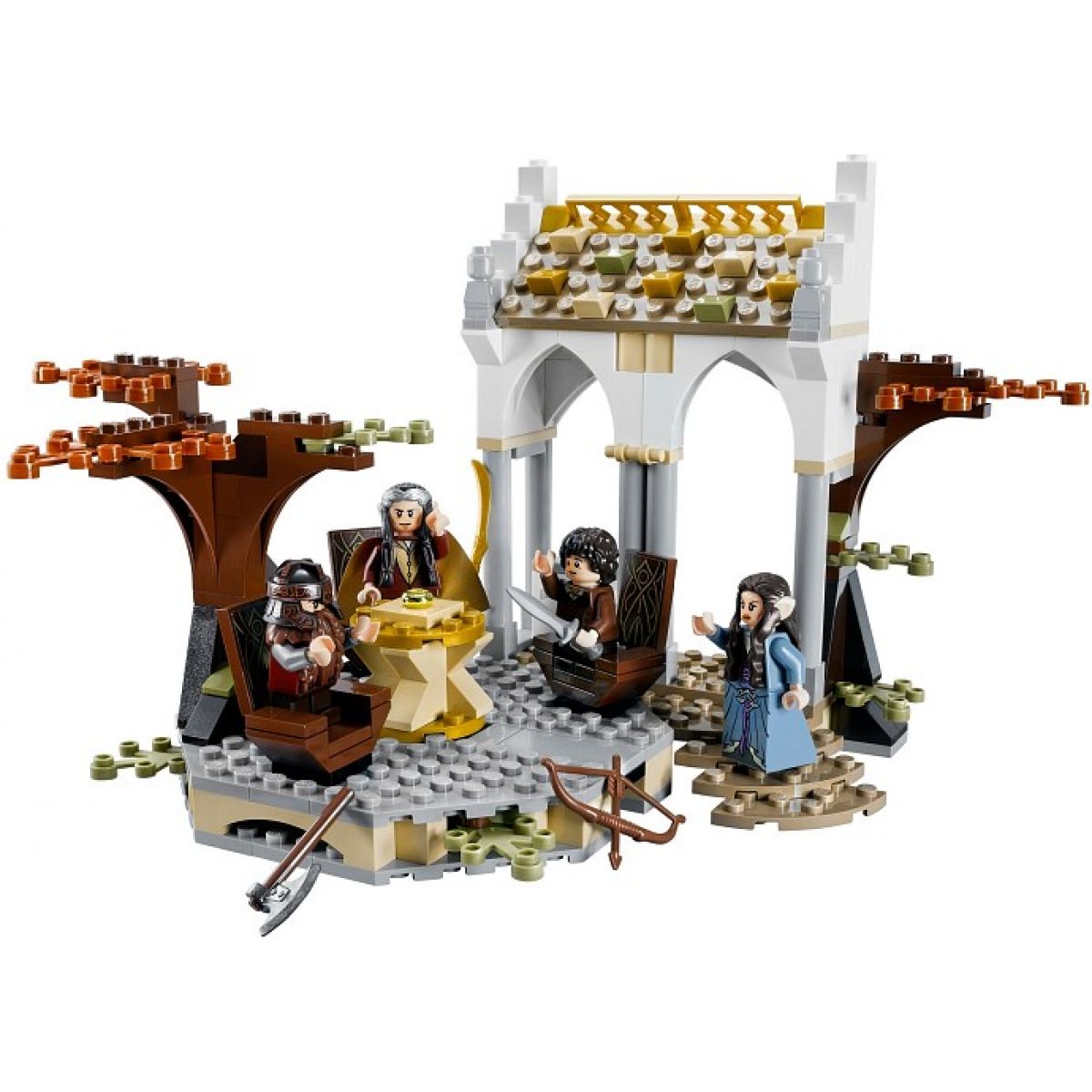 Součástí jsou 4 minifigurky se zbraněmi: Elrond, Arwen, Frodo Pytlík a Gimli.