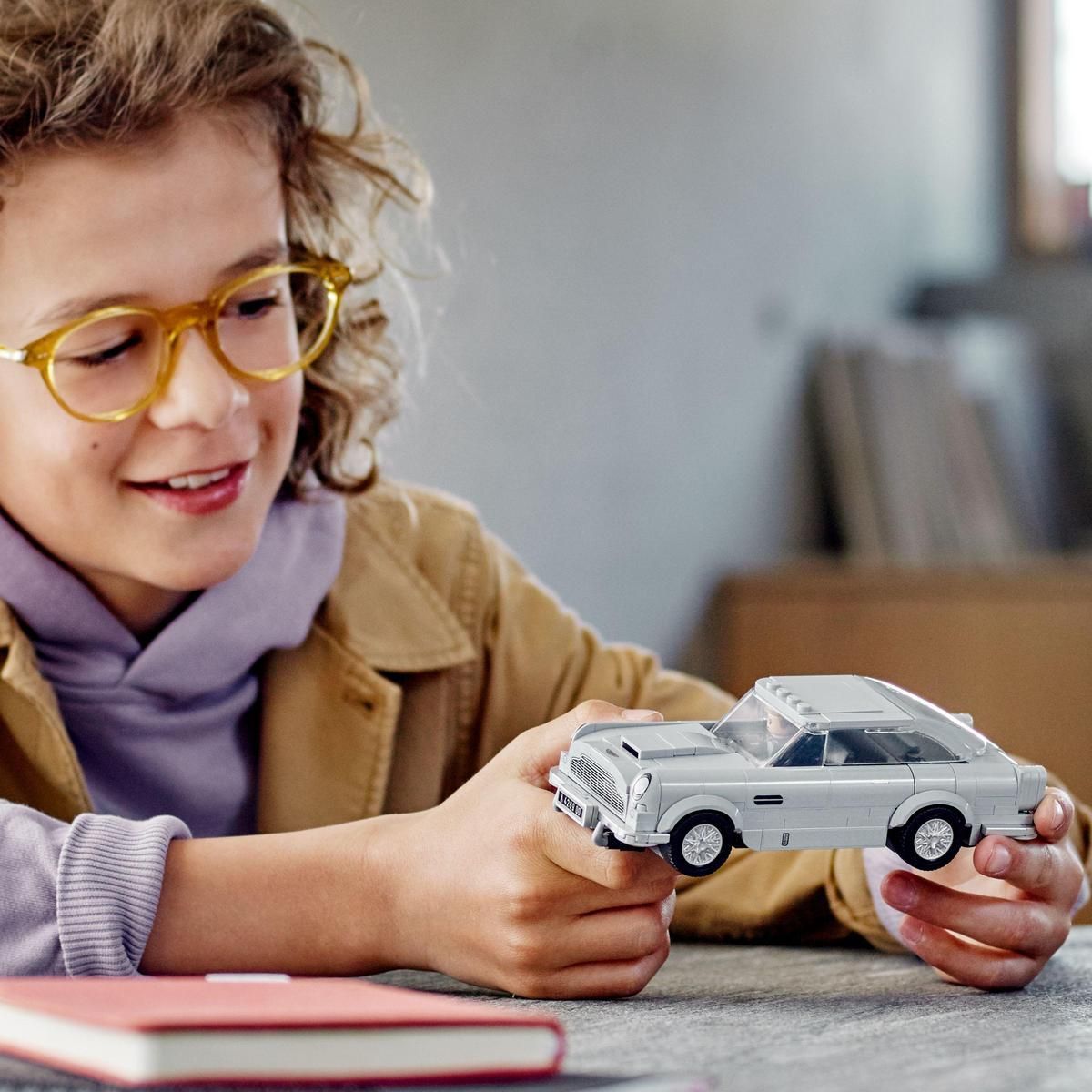 Tento sběratelský model sporťáka Aston Martin DB5 má také tvarované stříbrné ráfky kol a 4 soupravy poznávacích značek navíc pro různé filmy s Jamesem Bondem – a nechybí ani minifigurka Jamese Bonda z filmu Není čas zemřít.