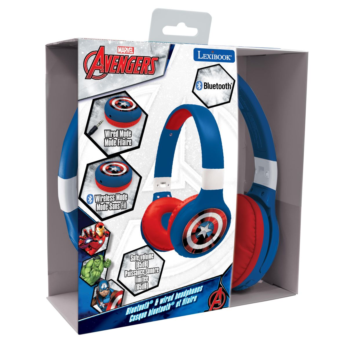 Zažijte komfort a bezpečí poslechu s Lexibook 2v1 bluetooth skládacími sluchátky Avengers, která jsou navržena speciálně pro děti.