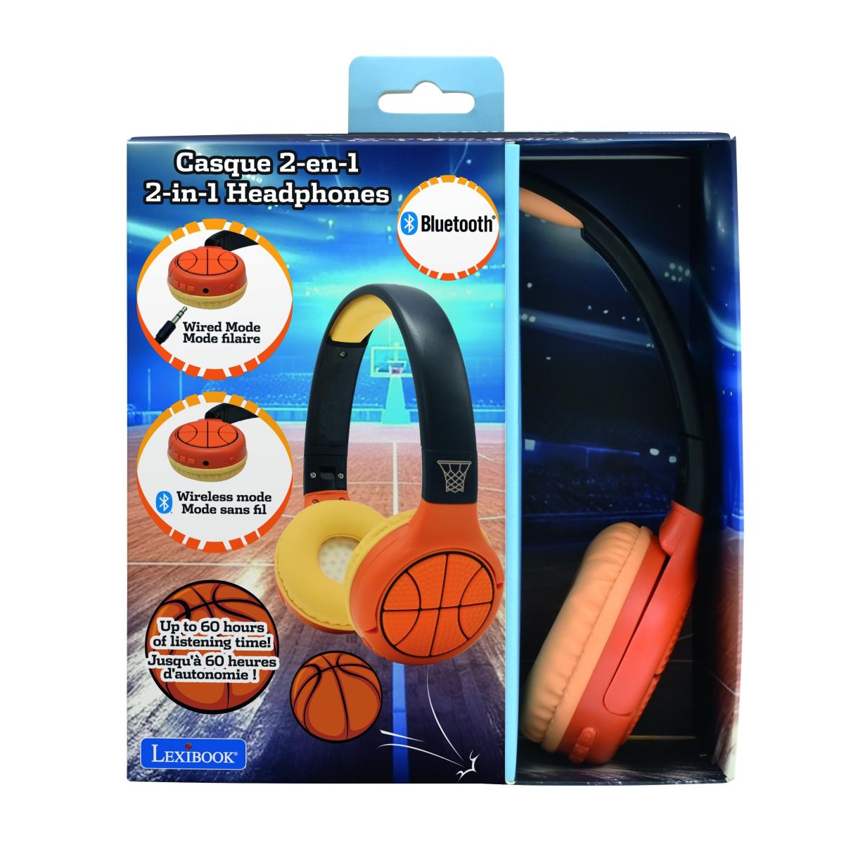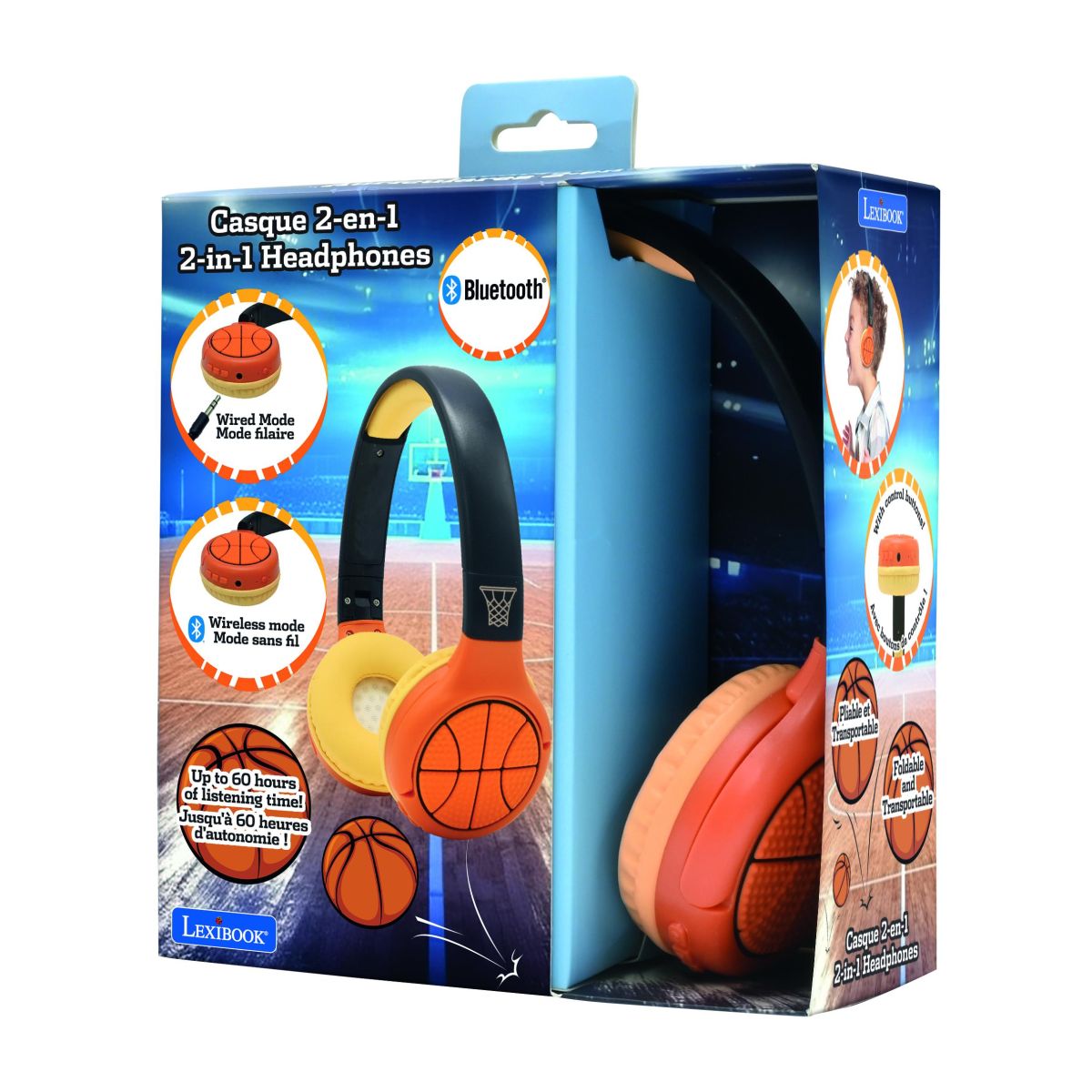 Užijte si bezpečný poslech s Lexibook 2v1 bluetooth skládacími sluchátky Basketbal, která jsou navržena speciálně pro děti.
