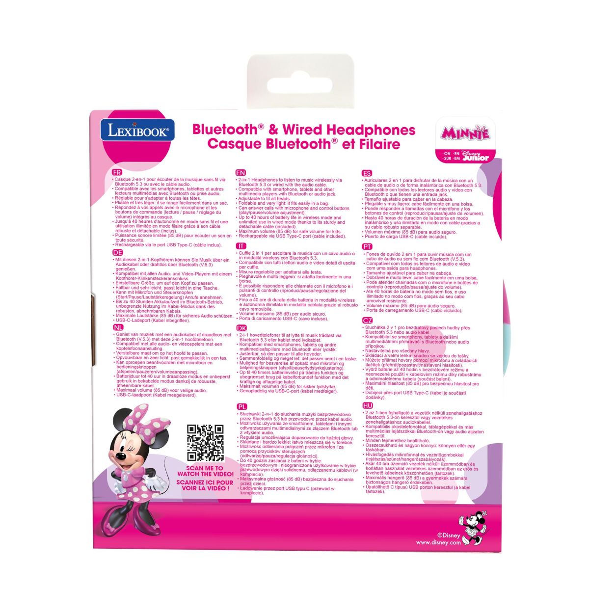 Lexibook 2v1 bluetooth skládací sluchátka Minnie s limitem hlasitosti