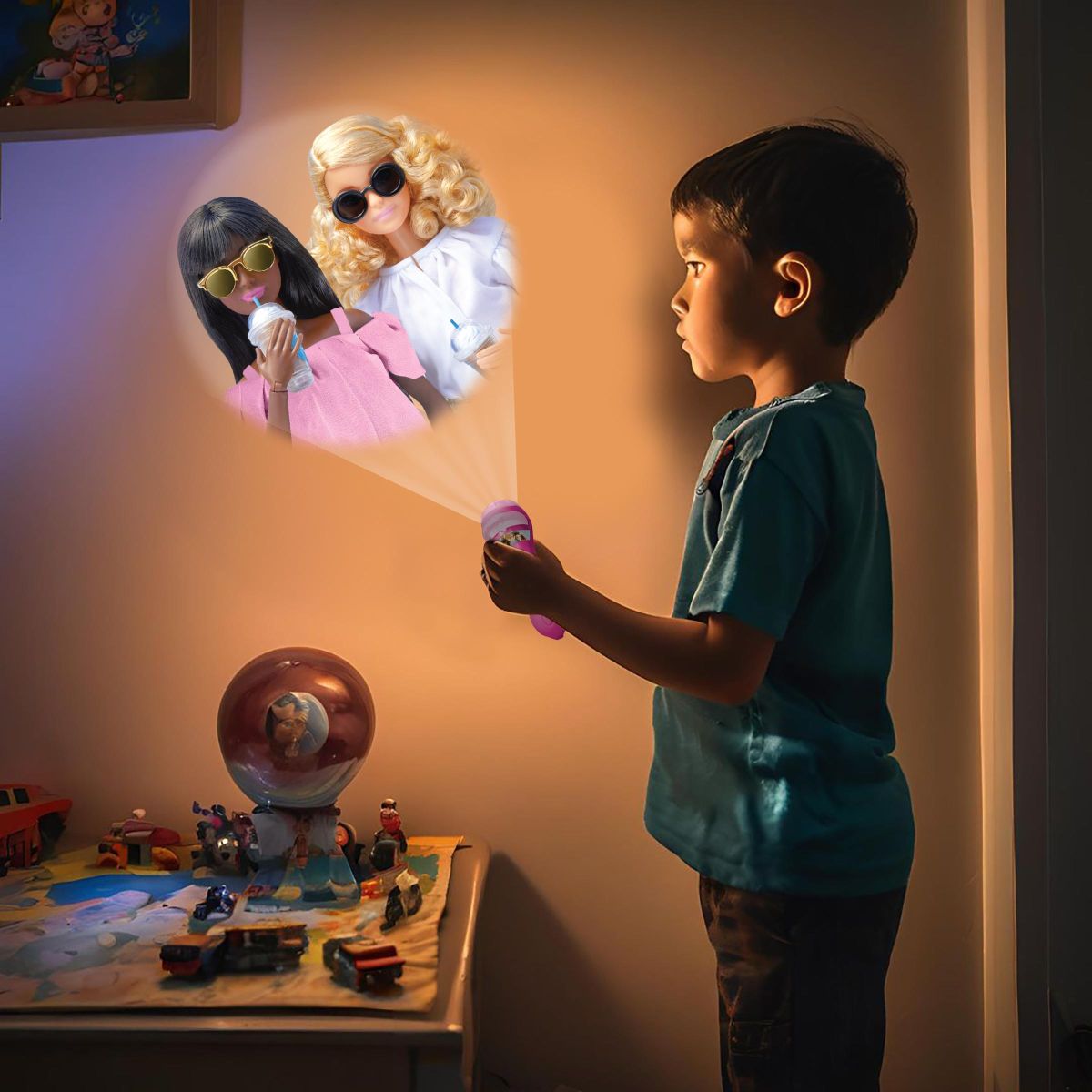 Integrovaný projektor využívá tři výměnné kotouče s celkem 24 obrázky, které zobrazují různé scény ze světa Barbie a podporují rozvoj dětské fantazie i vyprávění příběhů. Ovládání pomocí jednoho tlačítka umožňuje jednoduché přepínání mezi funkcí baterky a projektoru.