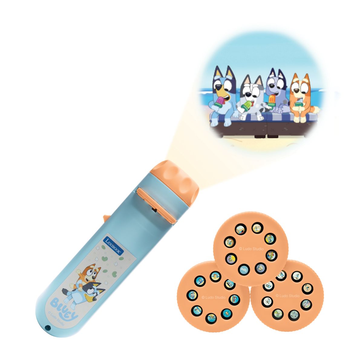 Integrovaný projektor umožňuje promítání obrázků pomocí tří vyměnitelných kotoučků, které zobrazují různé scény ze světa Bluey. Tato funkce podporuje kreativní vyprávění příběhů a vytváří příjemnou atmosféru zejména při večerních aktivitách. Ovládání je intuitivní a přizpůsobené dětem.