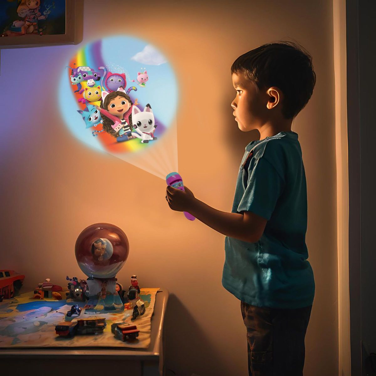 Integrovaný projektor umožňuje promítání celkem 24 barevných obrázků pomocí tří výměnných kotoučků. Děti mohou snadno měnit jednotlivé scény a vytvářet vlastní příběhy inspirované seriálem Gábinin kouzelný domek. Promítání na stěnu nebo strop vytváří příjemnou atmosféru vhodnou pro večerní uklidnění.
