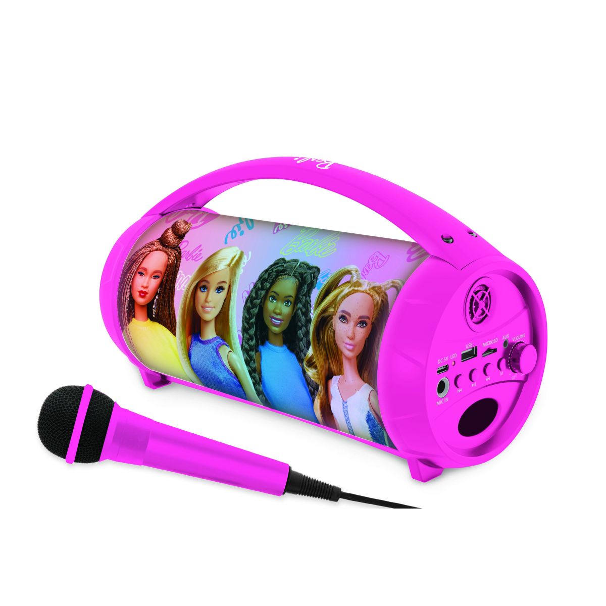 Vstupte do světa hudební zábavy s Lexibook bluetooth reproduktorem Barbie s mikrofonem svítícím, který promění každou oslavu nebo domácí odpoledne v nezapomenutelný zážitek.