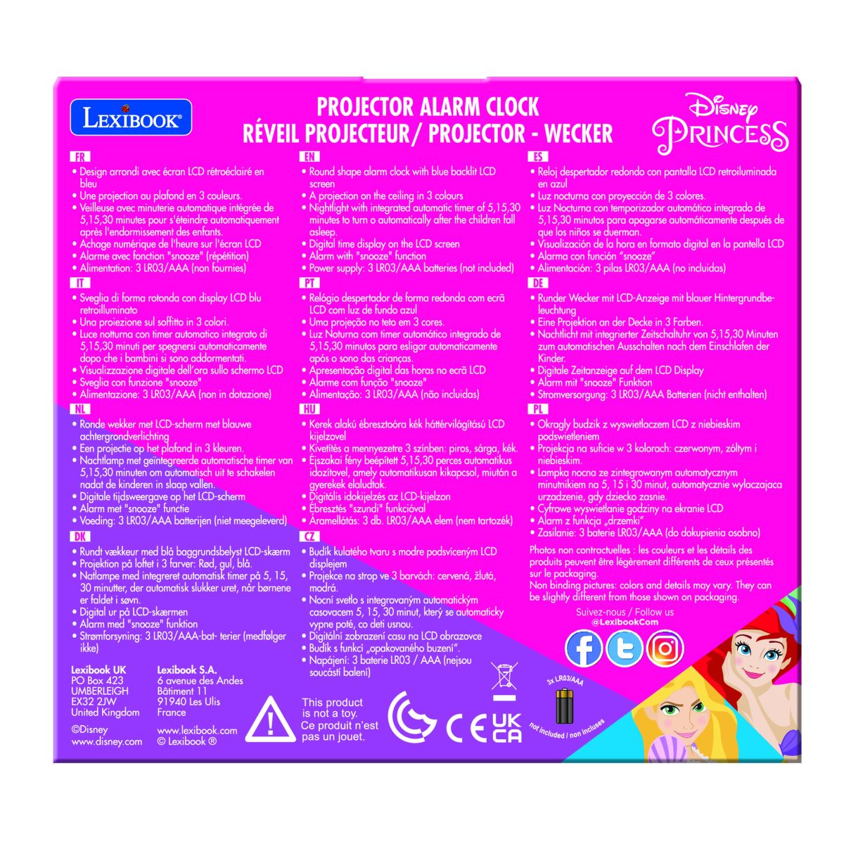 Začněte každý den s kouzelnou pomocí Lexibook budíku Disney princezny se stropním projektorem, který promění ranní vstávání v radostný zážitek.