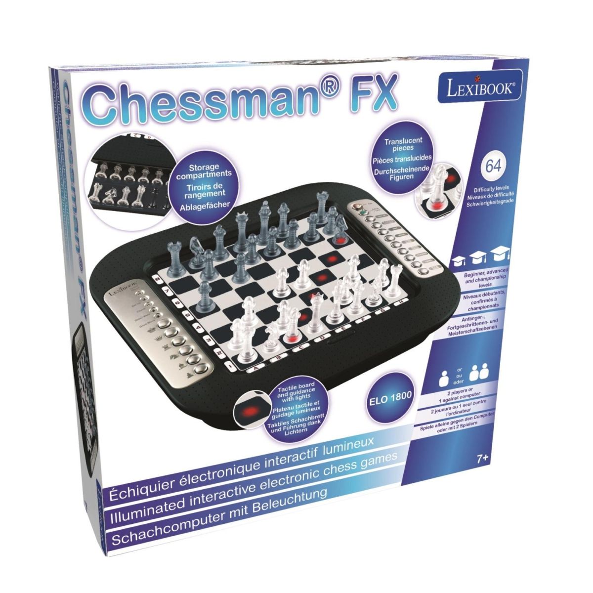 Elektronická šachová hra Lexibook ChessMan FX přináší dětem zábavu spojenou s učením a rozvojem logického myšlení. Díky modernímu designu a odolnému provedení je tato hra ideální na každodenní hraní doma i na cestách.