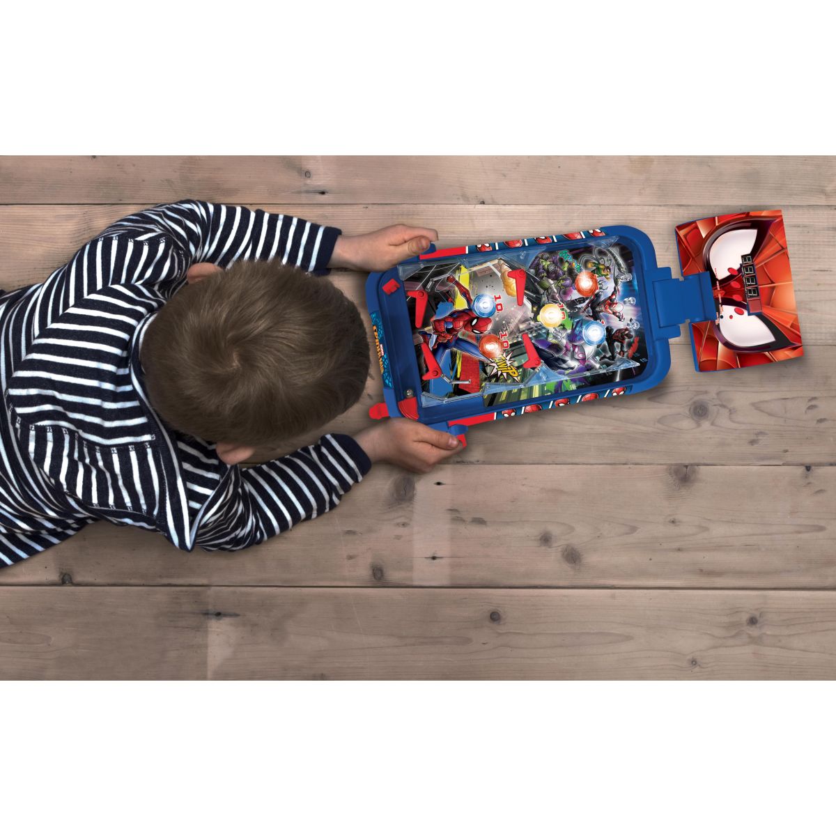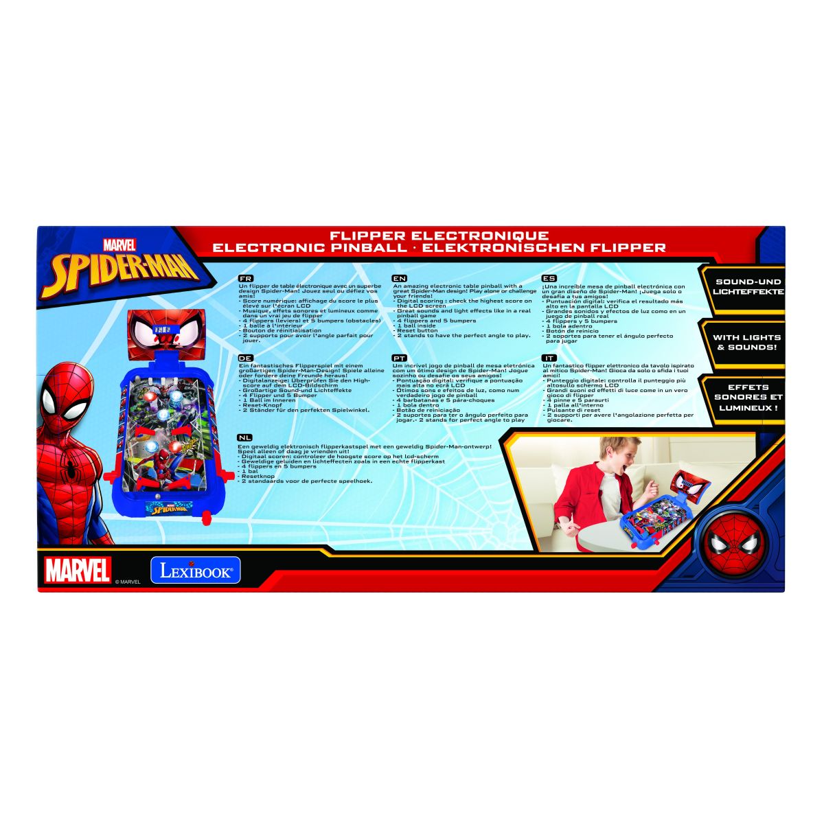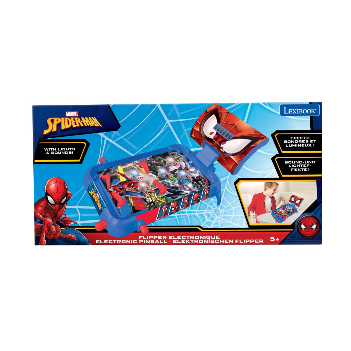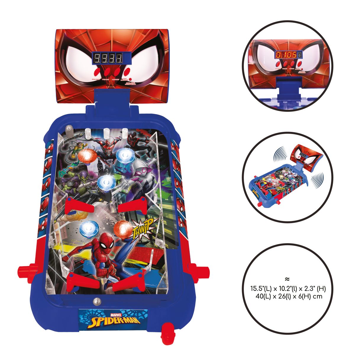 Elektronický stolní pinball Lexibook s motivem Spider-Man představuje kompaktní arkádovou hru určenou pro domácí zábavu. Kombinuje klasický princip pinballu s moderními elektronickými prvky, které zvyšují herní zážitek a přehled o průběhu hry.