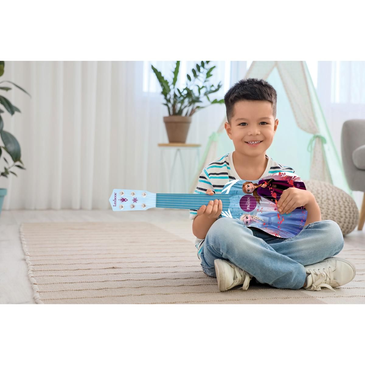 Vstupte do světa hudby s Lexibook mojí první kytarou Frozen, která nabízí ideální spojení zábavy a praktického designu pro malé muzikanty.