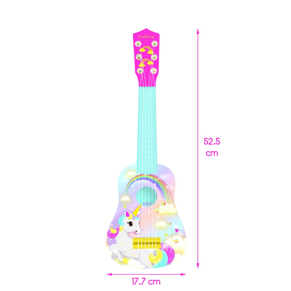 Připravte své dítě na hudební dobrodružství s kytarou Lexibook moje první kytara Jednorožec – 21"/53 cm, která nabízí spojení hravosti a kvality v jednom.