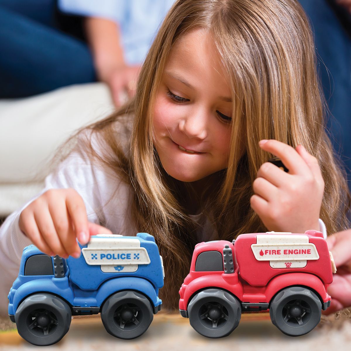 Připravte své dítě na dobrodružství plné zábavy s touto sadou policejního a hasičského auta vyrobenou z ekologického bioplastu.
