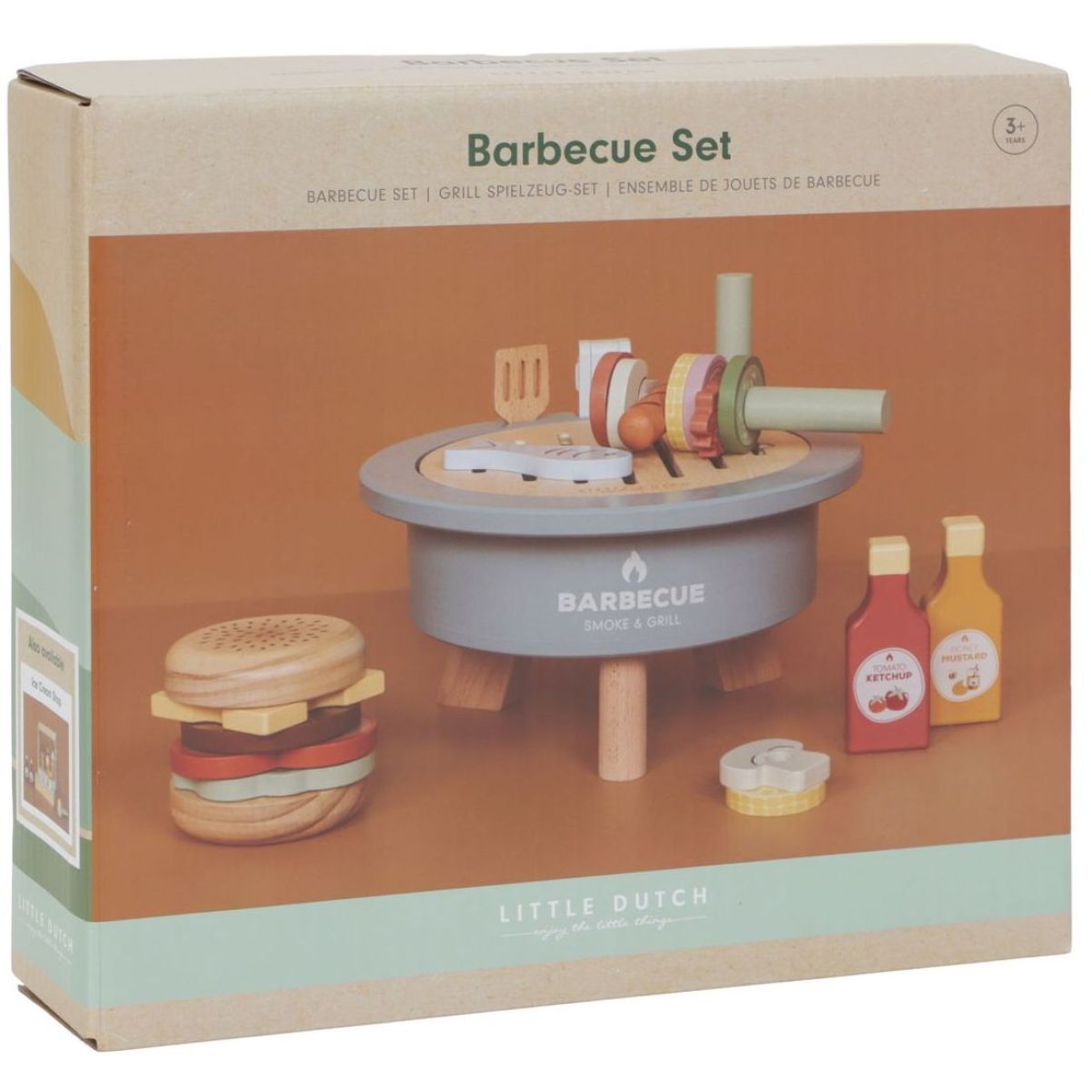 Objevte svět zábavy s Little Dutch Barbecue sadou dřevěnou, která nabízí 34 dílů pro nekonečné hodiny kreativní hry. Tato sada obsahuje vše potřebné k přípravě letní barbecue party – od dřevěného uhlí přes špízy až po kečup a hořčici. Vyrobená z kvalitního dřeva certifikovaného FSC, je bezpečná a odolná. Rozměry 24,5 x 24,5 x 12,2 cm zajišťují pohodlnou manipulaci pro malé kuchaře. Ideální pro děti od 3 let, které rády napodobují dospělé a rozvíjejí svou představivost a motoriku.